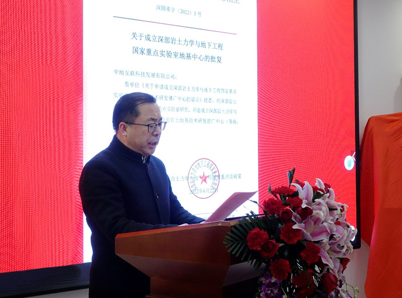 會議分為兩部分,上半場為中心揭牌儀式,首先由何滿潮院士致辭,何院士指出科技創(chuàng)新是引領發(fā)展的第一動力,地基中心依托深部國重實驗室成立,將科技創(chuàng)新與實體工程緊密結合,將創(chuàng)新科研落地,符合國家大政策方向,并對中心今后發(fā)展提出了三個希望。隨后住房和城鄉(xiāng)建設部科技與產(chǎn)業(yè)化發(fā)展中心曹吉昌處長進行了講話,強調科技創(chuàng)新要強化企業(yè)主體地位,推進創(chuàng)新鏈、產(chǎn)業(yè)鏈、資金鏈、人才鏈深度融合,發(fā)揮科技型企業(yè)的引領支撐作用,曹處長介紹了住房和城鄉(xiāng)建設部科技與產(chǎn)業(yè)化發(fā)展中心的定位以及為企業(yè)服務的宗旨,并結合與地基中心合作開展的《巖土全生命期管理研究與示范》的實施成效,對中心的發(fā)展提出了三個期望。
